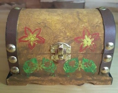 Truhe aus Holz 16,5x11x8,55 cm, gebogener Deckel mit Metallverschluss, handbemalt mit Acrylfarben