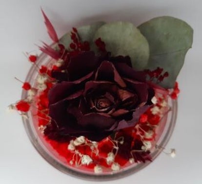 Recycelte Gläser mit getrockneten Blumen/Blättern (Laura Handmade & Deko (SHD) und eigenen getrockneten), Dekosteine/Dekosand (oberste Schicht mit Lack/Leim (Kreul)).