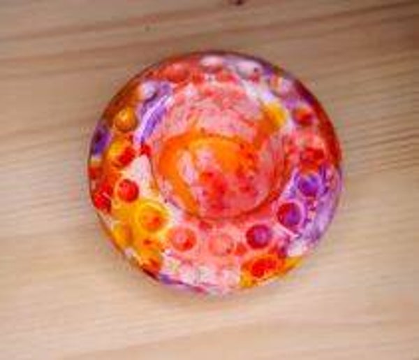 Diese Dekoteil aus Raysin (Rayer 100/200) mit Farbkleksen (Farben von heyamijiao/TimesRui) kann für Teelichter, für getrocknete Blumen, Kleingeld usw. verwendet werden.