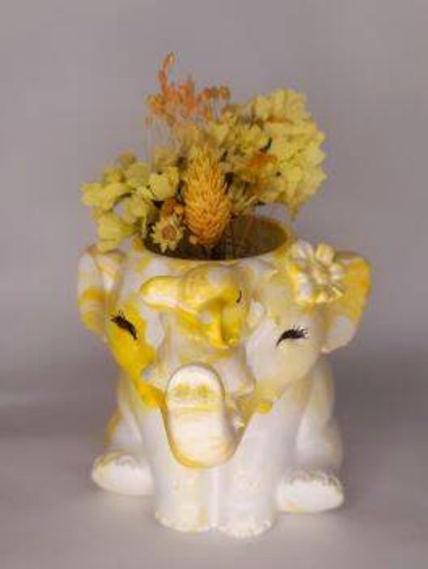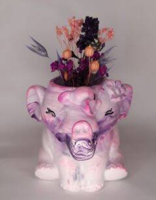 Elefant groß mit Trockenblumen