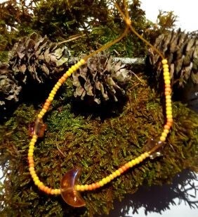 Die Glasperlen sind auf einer elastischen Perlenfadenschnur aufgefädelt.