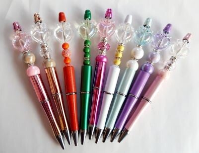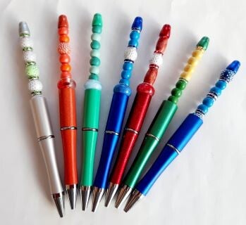 Handelsübliche Kugelschreiber mit verschiedenen Accessoires aus Holz, Acryl usw.